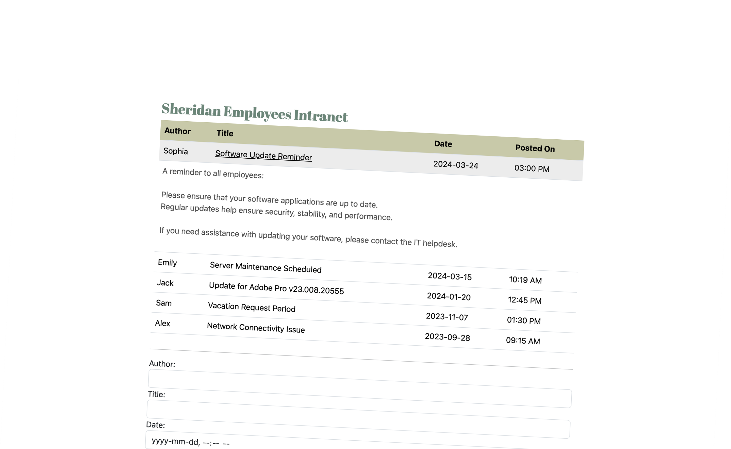 A Spring Boot application serving as a bulletin board for employees to communicate within a company.